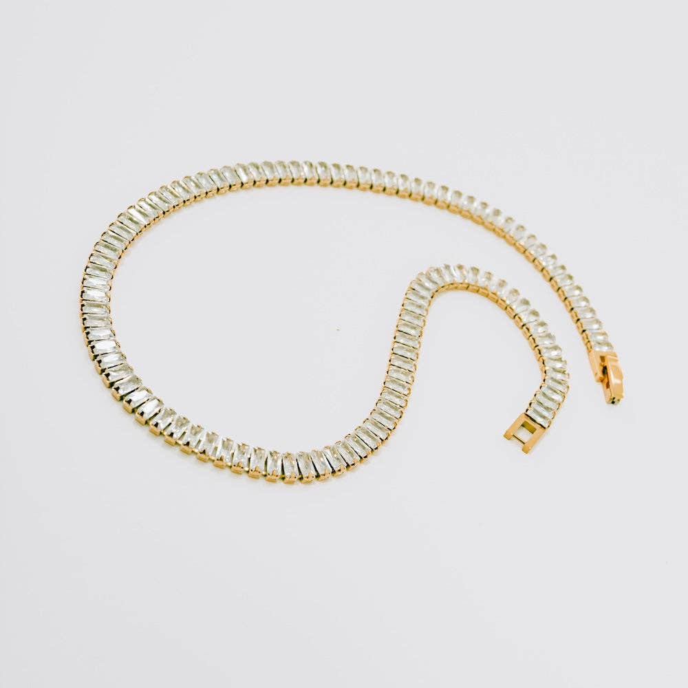 Sparkle in our Dazed In Diamonds Choker Necklace! Waterproof and featuring radiant diamonds, this accessory is classy and bold. Get ready to turn heads with its dazzling design!
