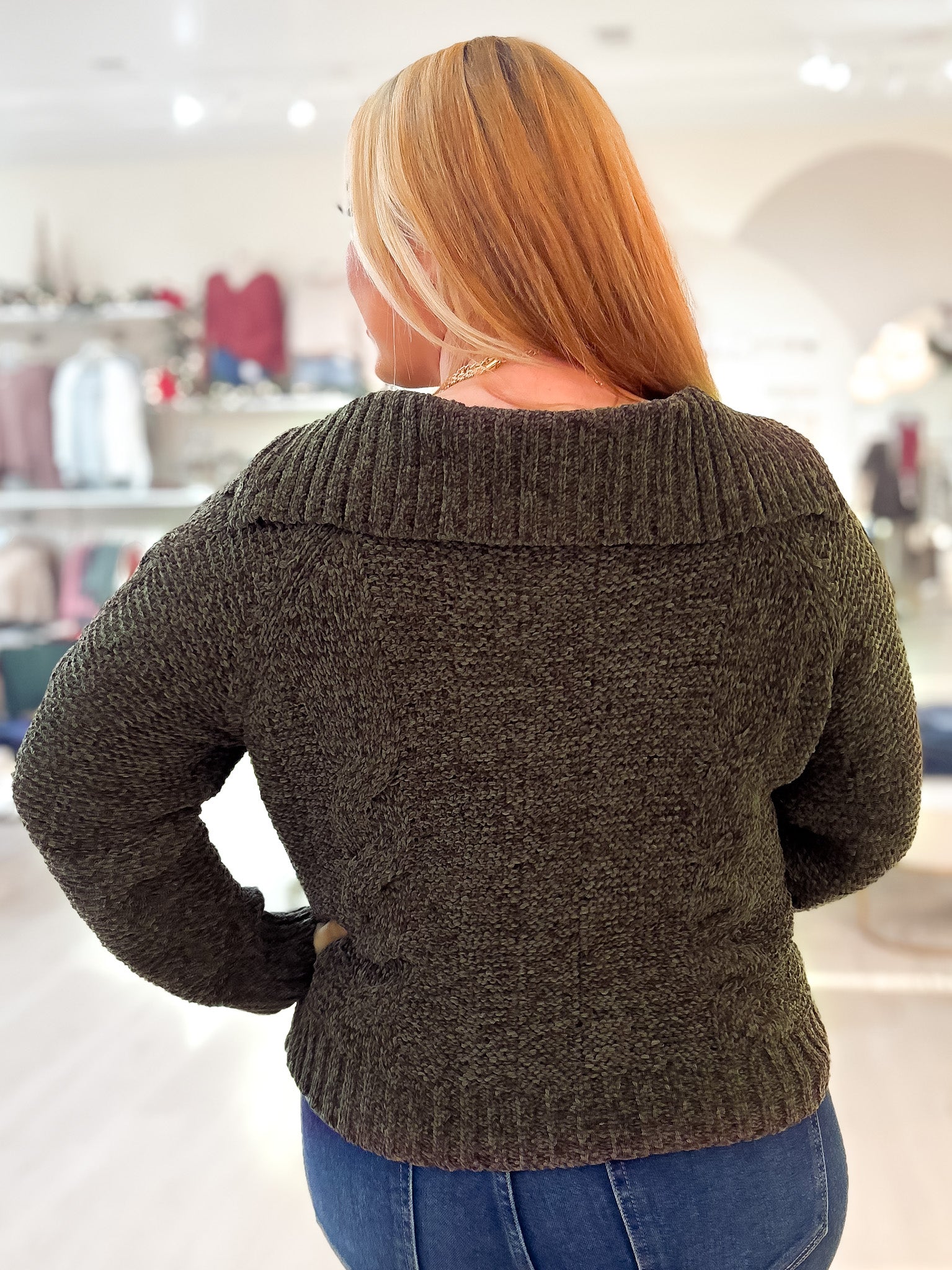 Chenille Cable Knit Collar Button Sweater Cardigan