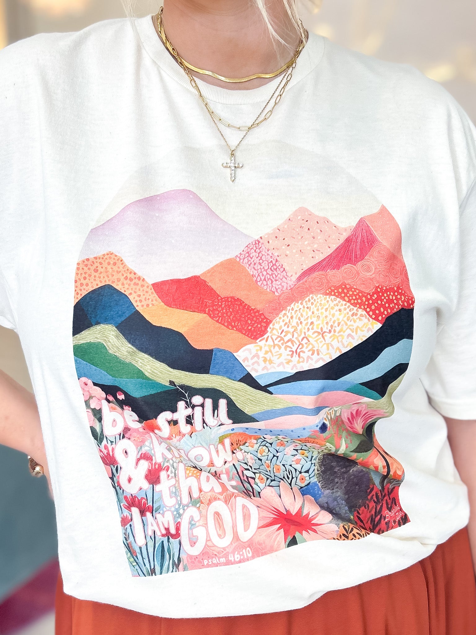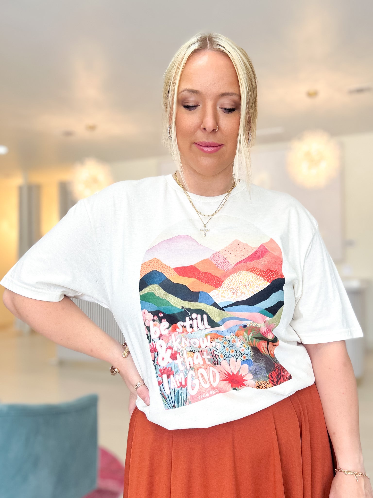 Embrace calm and faith with the Be Still & Know Graphic Tee. This colorful and beautifully designed shirt combines comfort with a powerful message, making it perfect for everyday wear or as a meaningful gift. Crafted for softness and style, it reminds you to pause, reflect, and trust in a higher power wherever you go. Elevate your wardrobe with this inspiring statement piece.