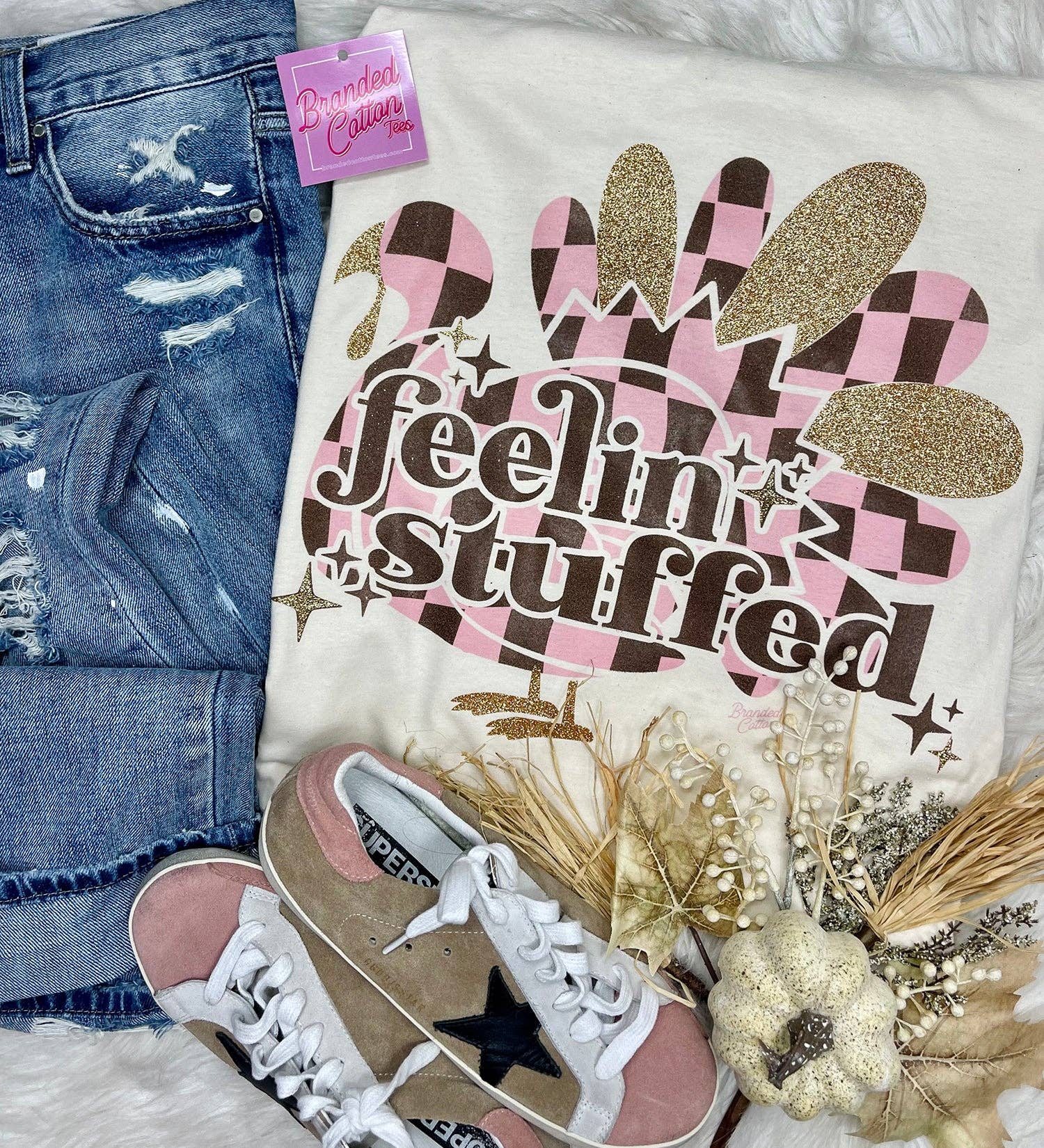 Experience the superior comfort and softness of the Feelin Stuffed Turkey Tee from Branded Cotton. This women's graphic T-shirt is a testament to our commitment to quality, comfort, and casual style. Every aspect of this tee, from design to production, is handled by our dedicated team, ensuring that you receive a product that is not just cute but also incredibly comfortable. Made from our signature premium cotton blend, this tee is an embodiment of our brand ethos - comfort is never sacrificed. Step into the world of Branded Cotton and feel the difference.