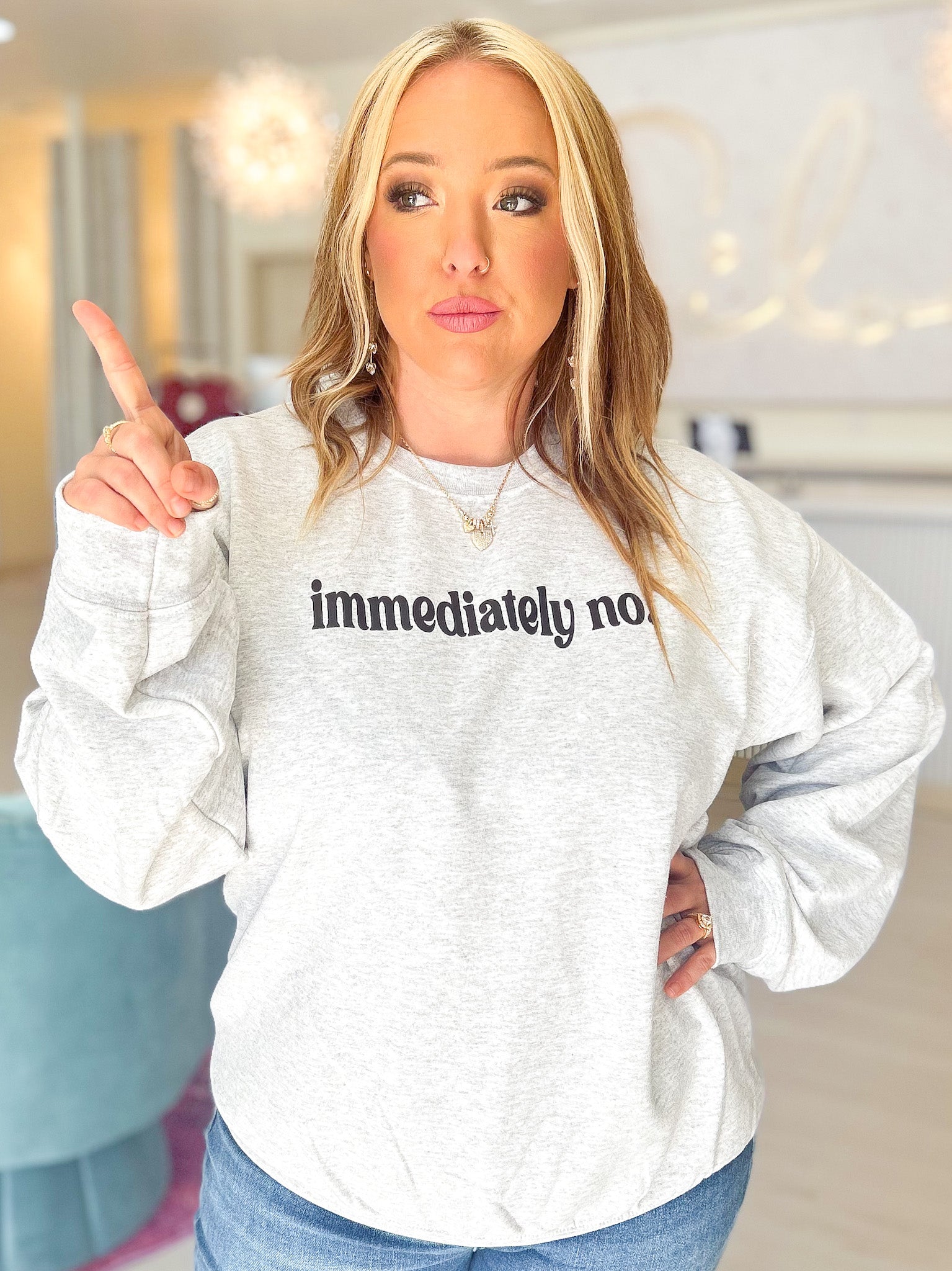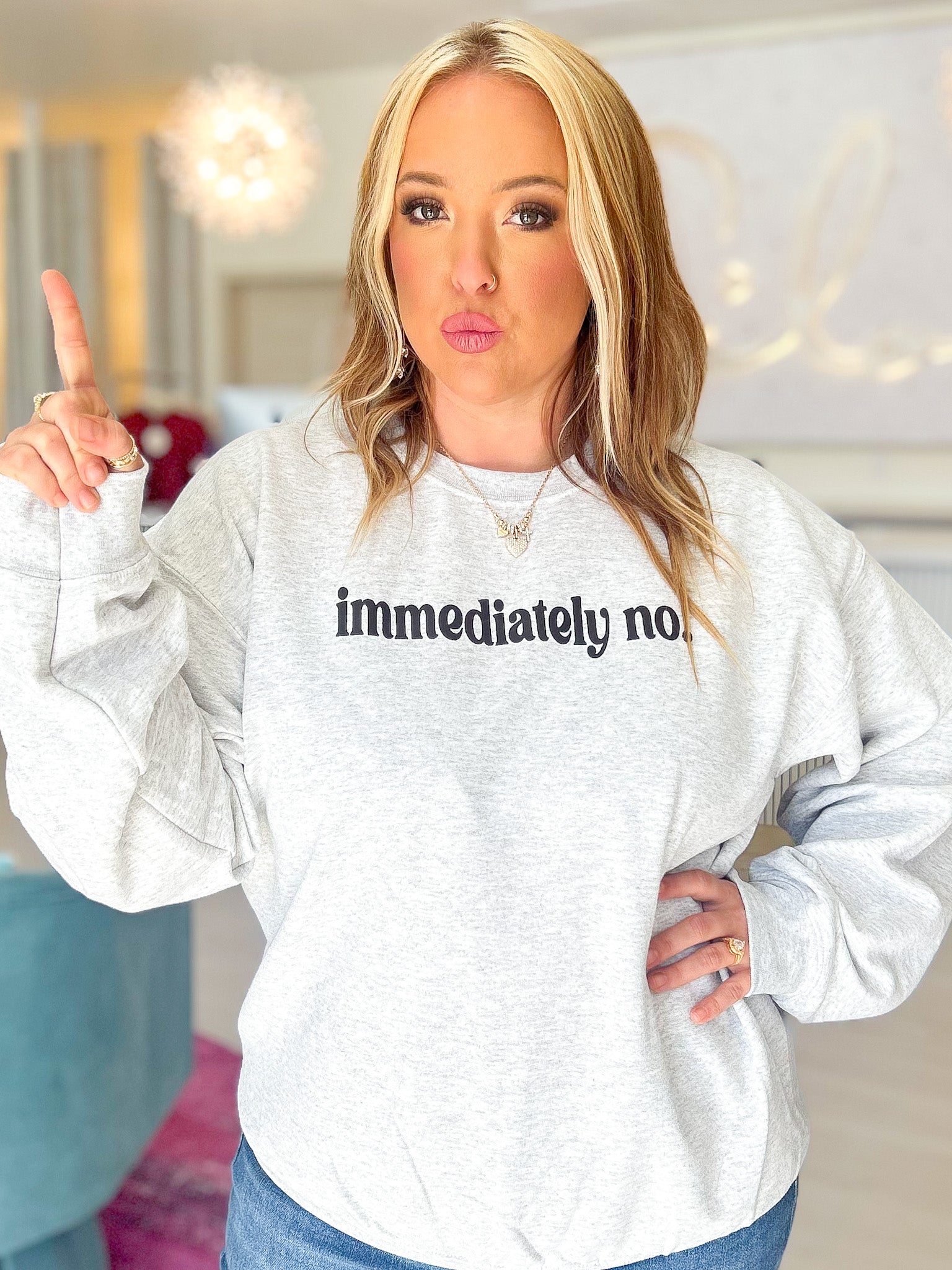 The "Immediately No" graphic sweatshirt blends bold attitude with unbeatable comfort. Made from a soft 50/50 cotton-poly blend, this black crewneck by Gildan features eye-catching pink puff print, perfect for confidently standing out. Cozy yet stylish, it’s your go-to choice for effortless self-expression every day.