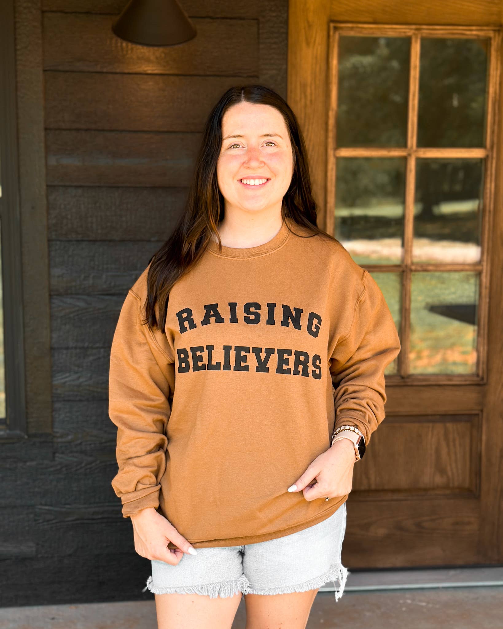 Embrace faith and comfort with the Raising Believers Graphic Sweatshirt. Crafted for warmth and style, this cozy sweatshirt features a bold design that inspires and expresses your beliefs. Perfect for everyday wear, it combines soft fabric with a confident message, making it an essential piece to uplift your wardrobe and spirit.