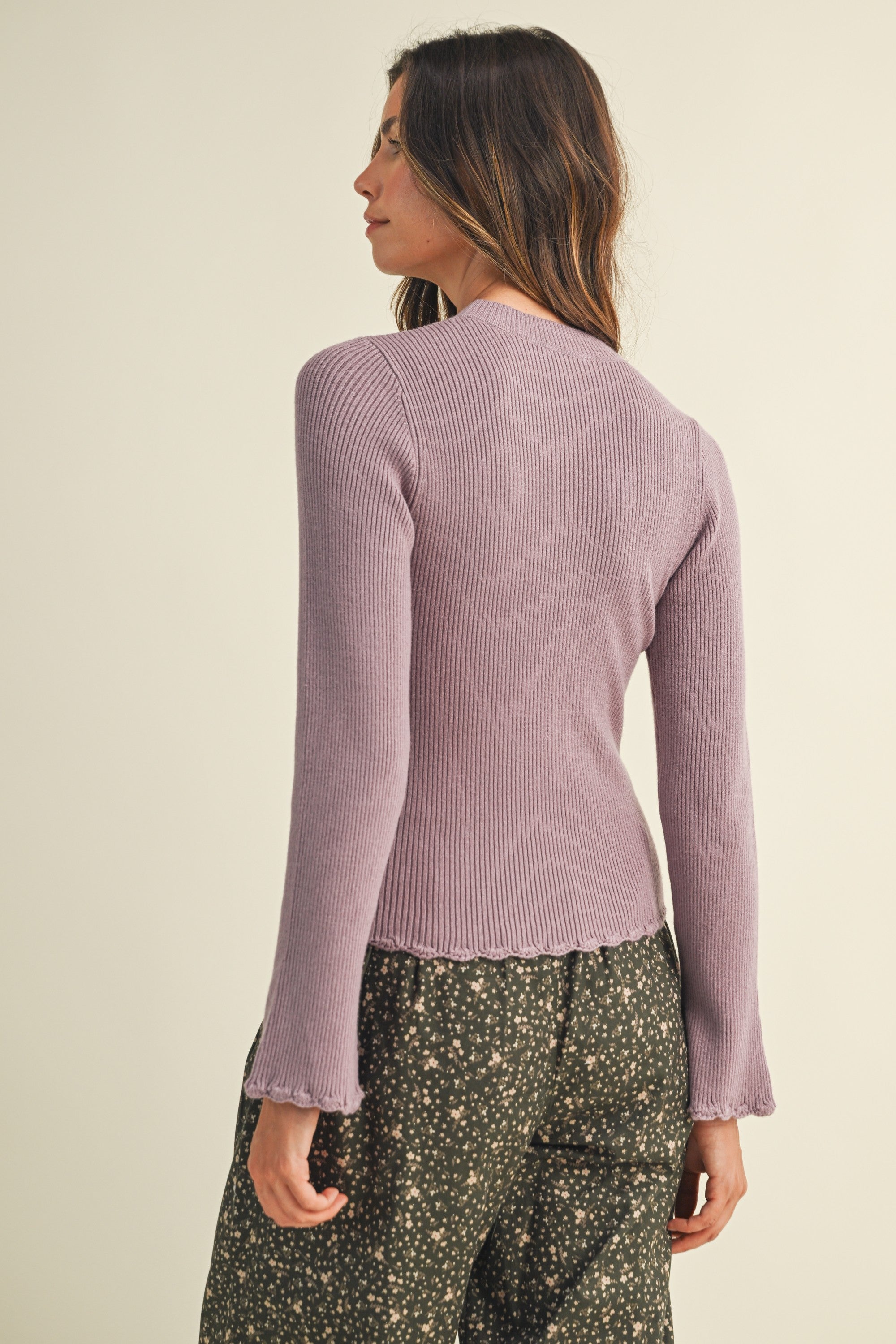 Elevate your everyday wardrobe with this sophisticated ribbed sweater top, featuring a charming scallop-edge detail that adds feminine flair. The mock neck and fitted silhouette create a polished, flattering look perfect for layering or wearing solo. Crafted from quality rib fabric, this long-sleeve essential transitions seamlessly from office to weekend, offering both comfort and timeless style. A versatile piece that works as hard as you do.