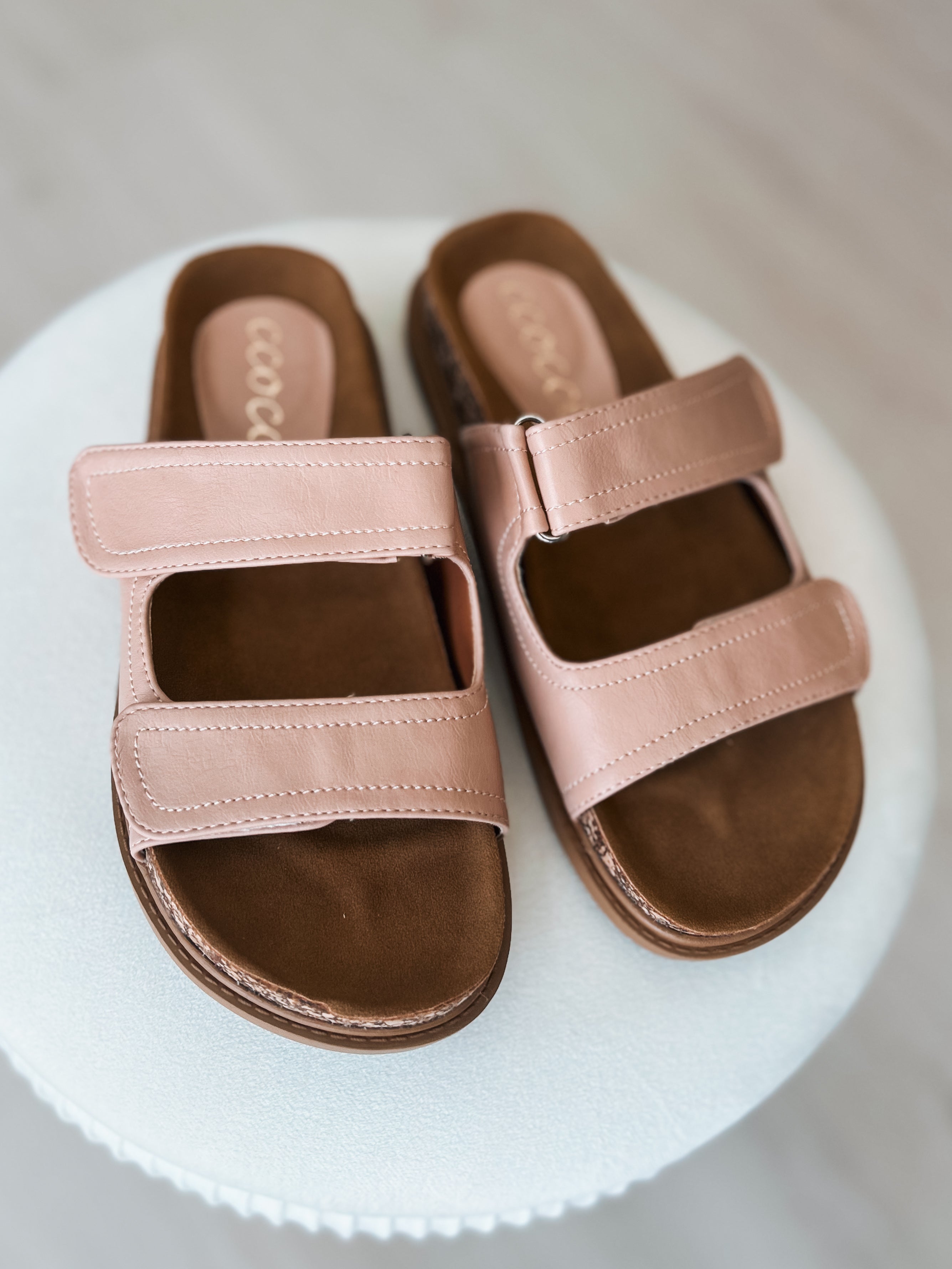 Experience ultimate comfort with the Gwen Blush Slide Sandal! These playful pink beauties feature a cushiony cork sole that molds to your feet with every step. The two adjustable Velcro straps let you customize your fit for all-day adventures. Slip into blissful comfort that's as fun as it is functional!