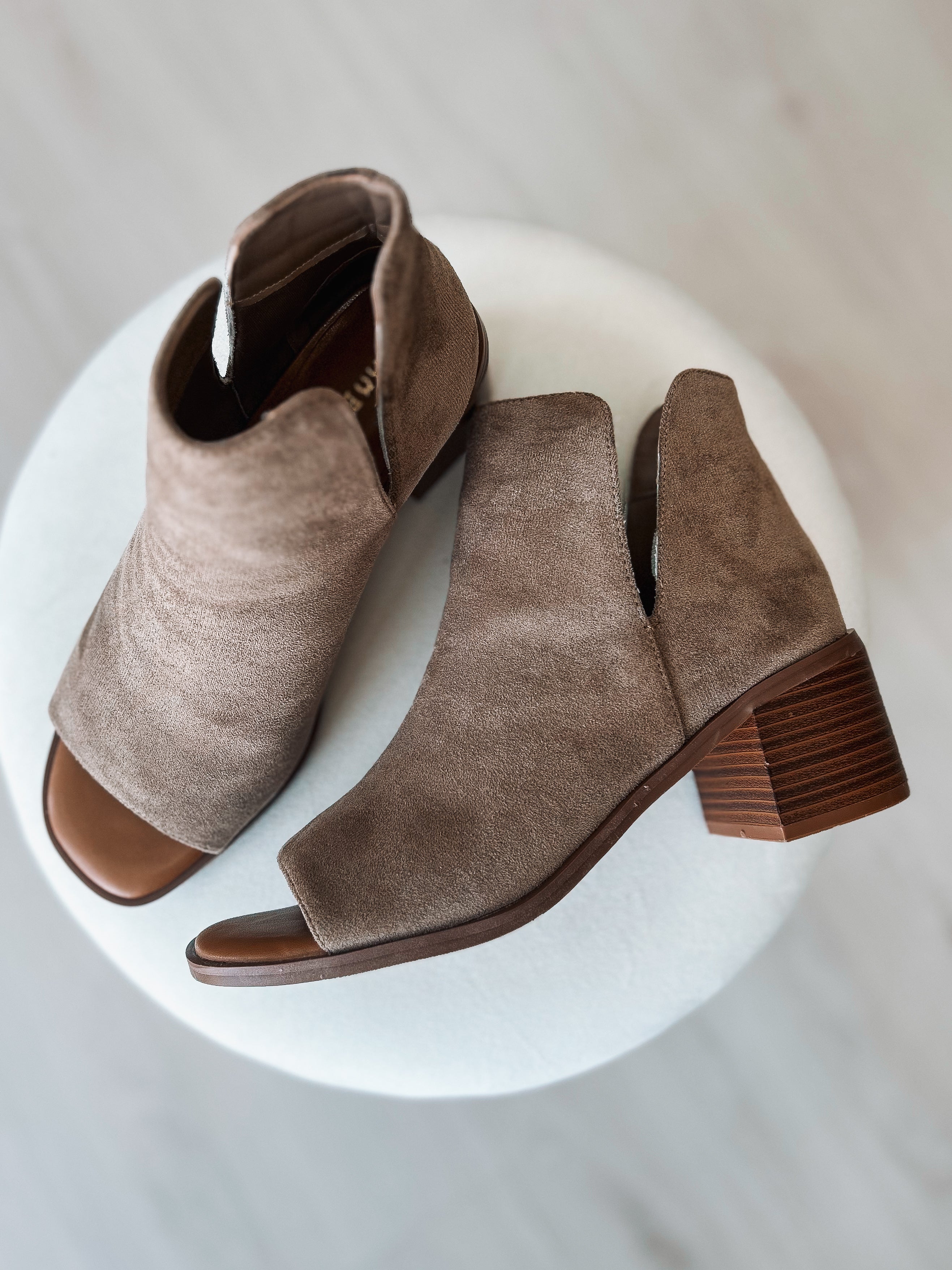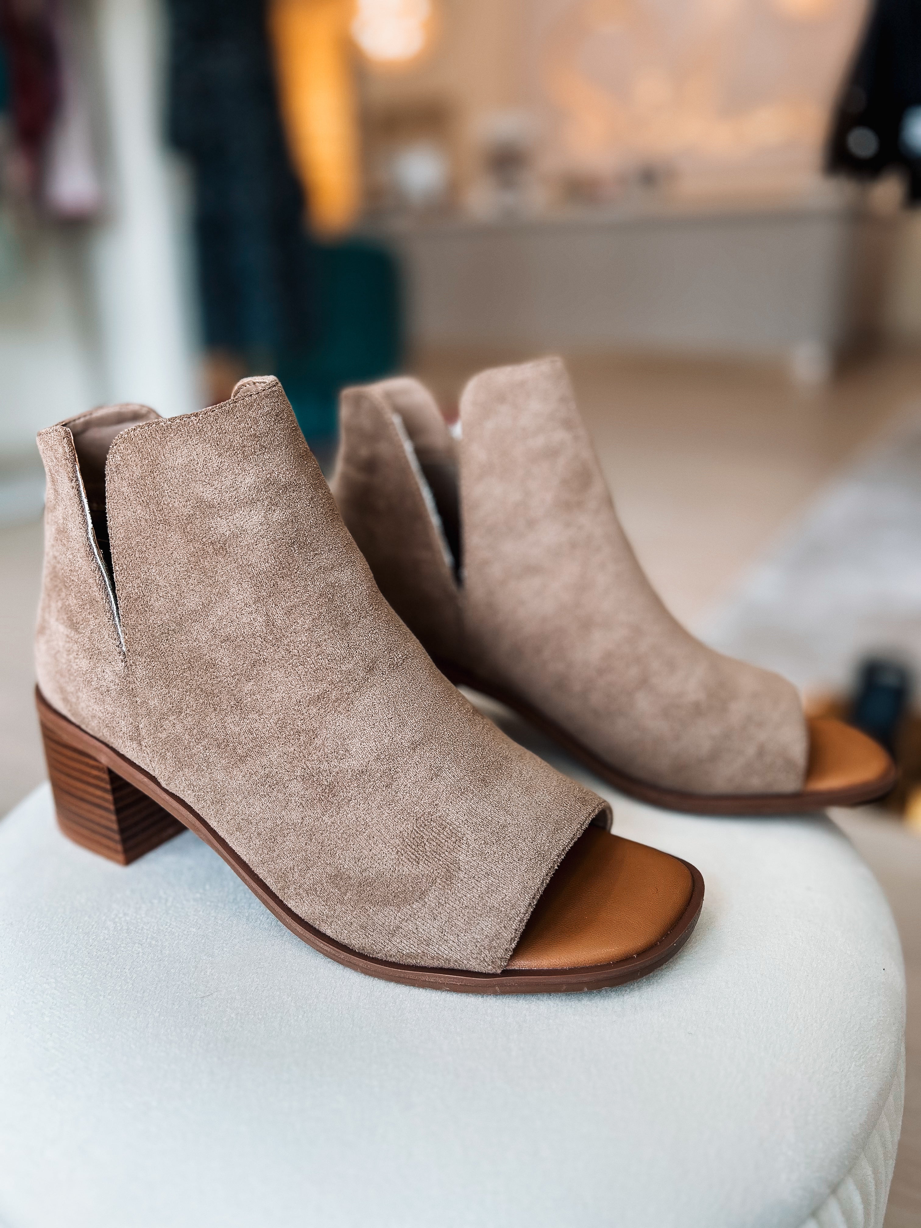 Step into style with our Intermix Open Toe Booties in tan! These sassy ankle booties feature a trendy pointed toe design with playful side cutouts that add a flirty twist to any outfit. The sturdy bamboo block heel provides comfortable height while keeping you steady on your feet. Perfect for dancing the night away or adding a fun pop to your daytime look. These versatile booties will have everyone asking where you got them!