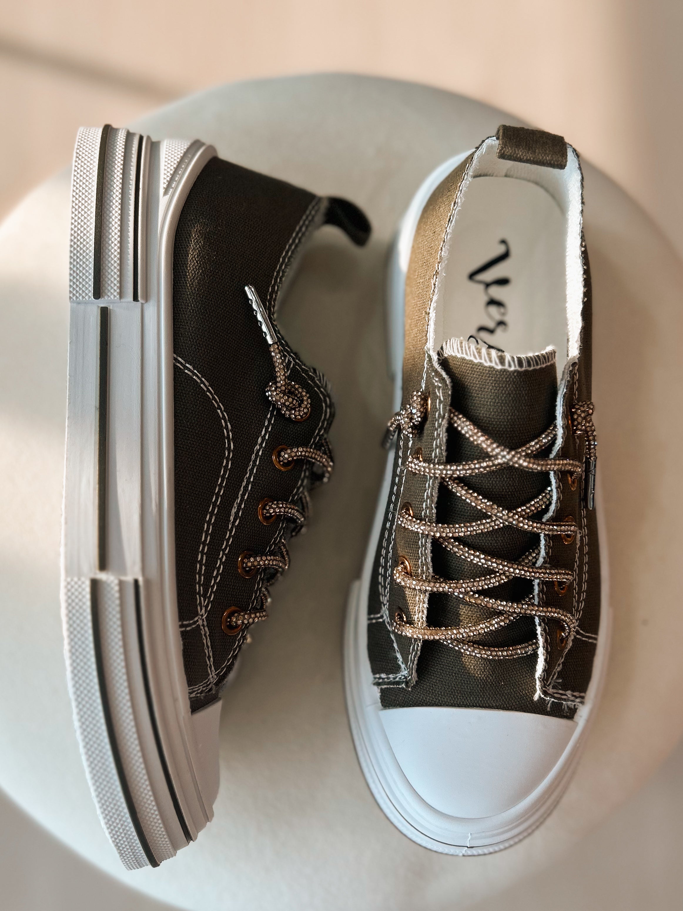 Introducing our Aman Canvas Rhinestone Lace Sneakers - the perfect combination of style and ease! Slip them on and let the rhinestone laces add a touch of glamour to your outfit. Their versatility makes them a must-have for any wardrobe. Step into fashion with a touch of sparkle.
