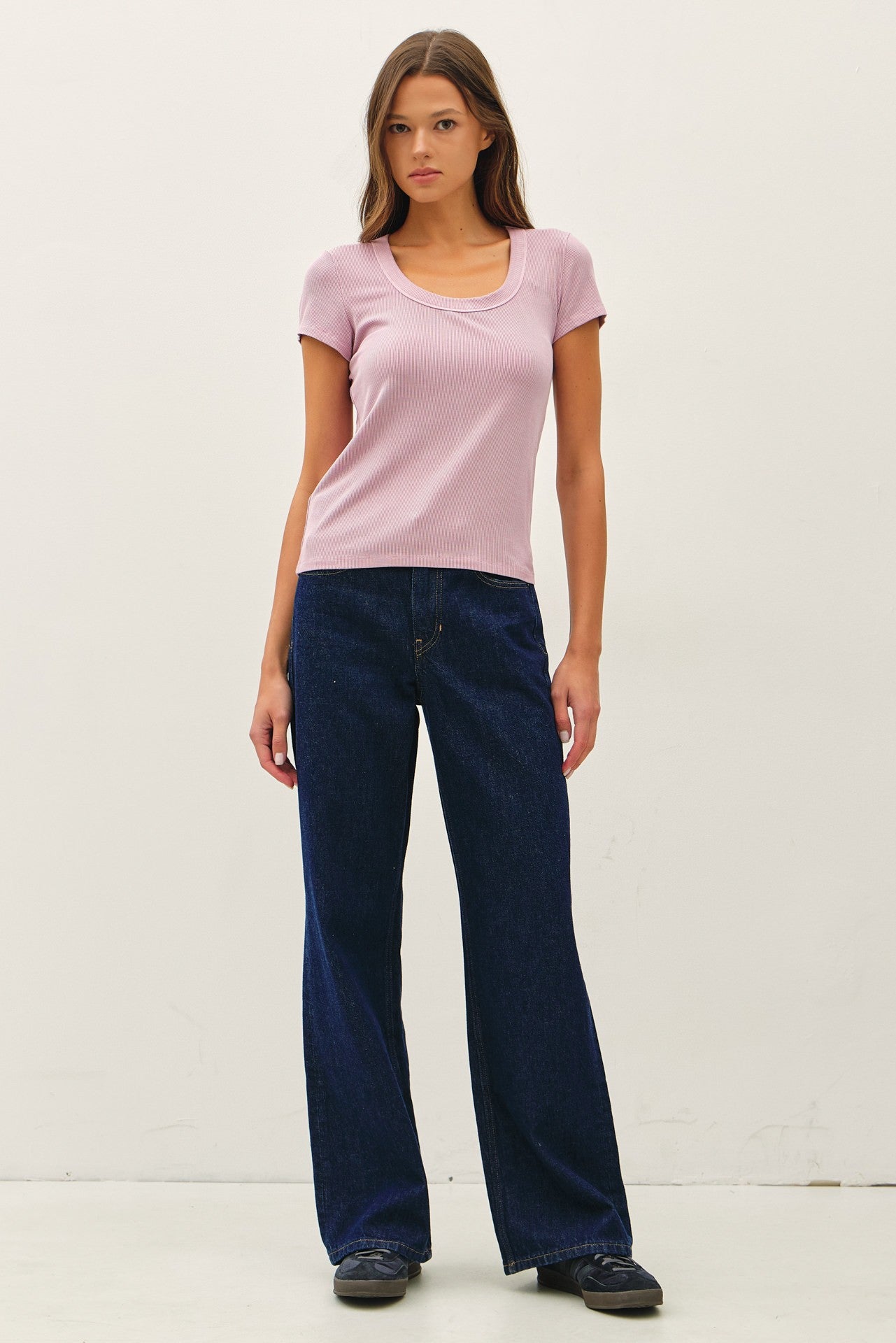 Effortless style meets everyday comfort in this lightweight ribbed knit tee. Crafted from ultra-soft fabric with subtle stretch, it hugs your frame in a flattering slim fit that hits right at the hip. The scoop neckline and short sleeves make it perfect for layering or wearing solo—ideal for warm weather transitions. A true wardrobe essential that works as hard as you do, this basic delivers timeless appeal season after season.